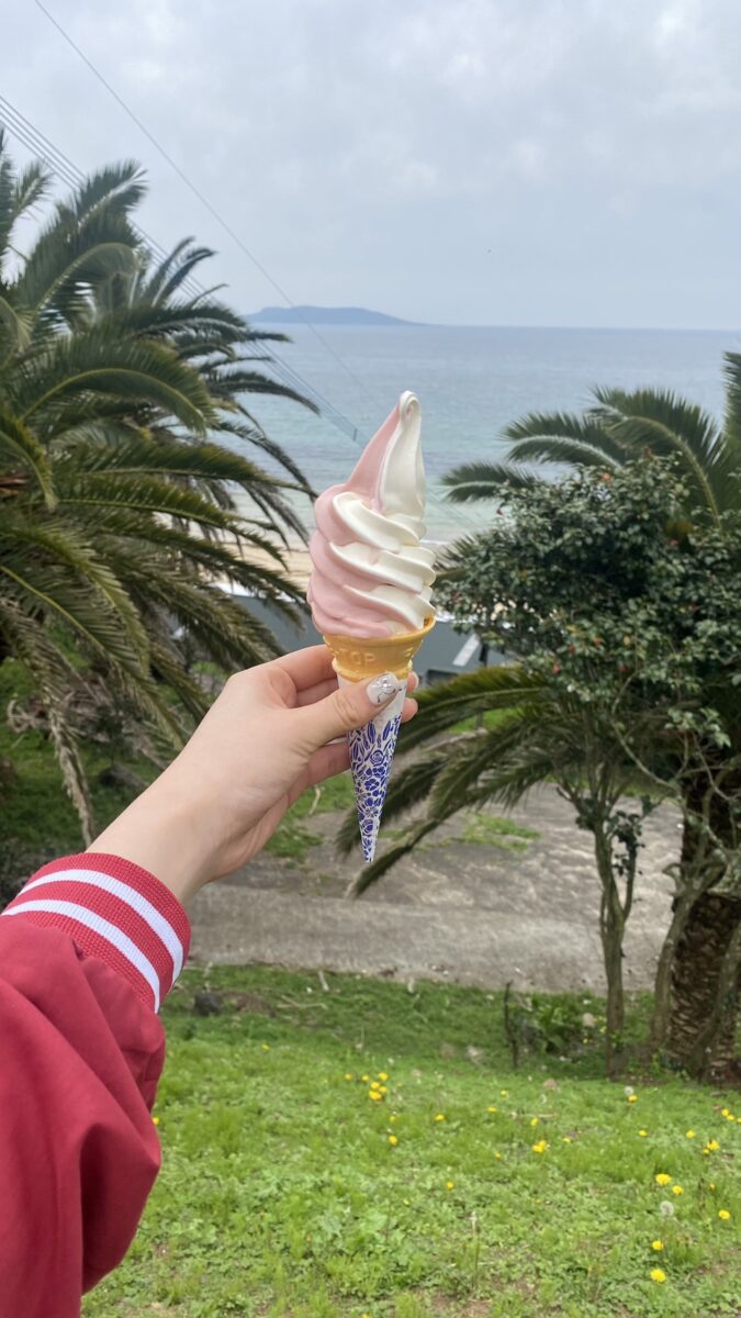 近くで、海の塩を作っているお店があり、その塩をアイスにかけて食べます🐷
